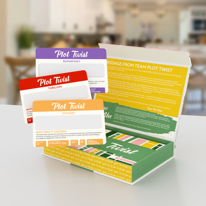 Plot Twist is an curated literary adventure. 36 scratch off cards each contain a unique book recommendation. Perfect for book lovers, casual readers, or the perfect gift for someone that loves books or wants to get into reading.